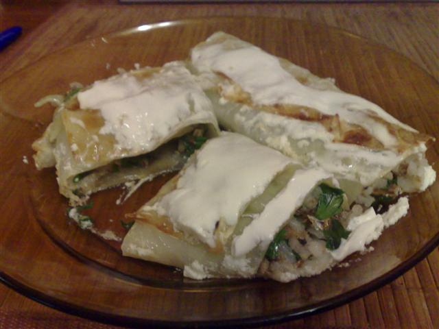 Что нужно:0,5 качана капусты,0,5 стакана риса,250г шпрот в масле,пучок петрушки,2ст.л растительного масла,2ст.л. сметаны,соль,перец по вкусу. Что делать: 1.Рис отварить до готовности.Петрушку вымыть,обсушить и измельчить.Капусту разобрать на листья.В широкой кастрюле вскипятить подсоленную воду и порциями отваривать листья по 2 мин.,перекладывая готовые в миску с холодной вдой.Обсушить. 2.Шпроты обсушить на салфетках.Снять с хребта и смешать с остывшим рисом и петрушкой.При необходимости приправить перцем. 3.Положить на каждый лист по 2ст.л. начинки,свернуть в рулет.Обжарить в разогретом масле,по 2 мин.с каждой стороны.Добавить сметану и готовить под крышкой 6 мин.Подовать горячими.
