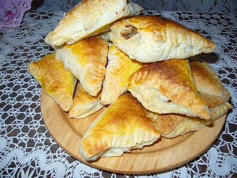 Слоеные пирожки в ассортименте (с мясом, грибами, капустой)