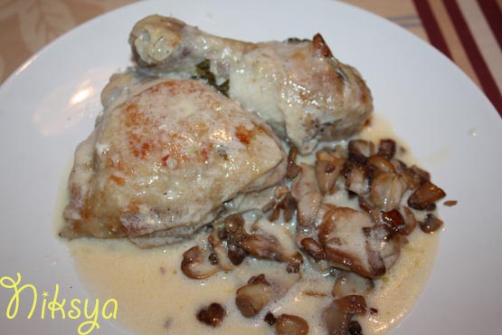 Фрикасе по-парижски из курицы с белым вином