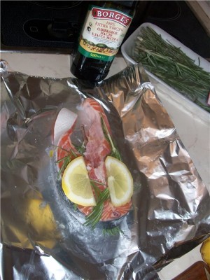 Стейк из семги запеченный в фольге.