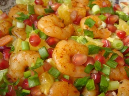 Салат с креветками, апельсином и гранатом