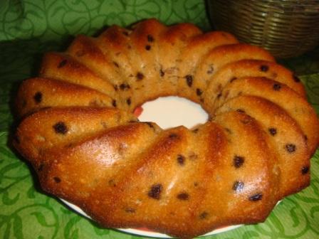 Медовый кекс с шоколадом, изюмом и орехами