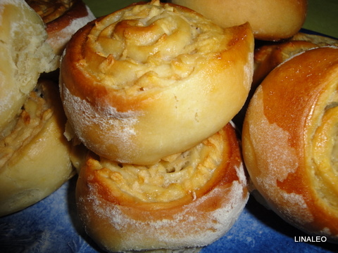 Слойки дрожжевые с яблоками и сгущённым молоком