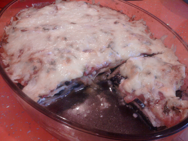Куриная грудка, запечённая с баклажанами и помидорами