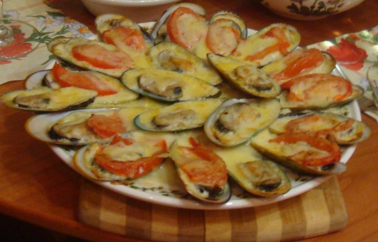 мидии на подушке из картофеля