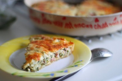 Разогреть духовку до 180. Смазать форму растительным маслом. Посыпать мукой рабочую поверхность ,раскатать тесто. Вложить его в форму, оставив край см. 3-4. Выпекать основу в духовке 10 минут.(центр) Вытащить из духовки, и выложить в основу по очереди ветчинно-луковую смесь и сырные сливки. Выпекать в течение 50-60 минут при 180.