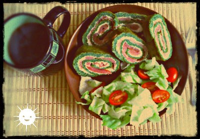рулет из шпината с тунцом