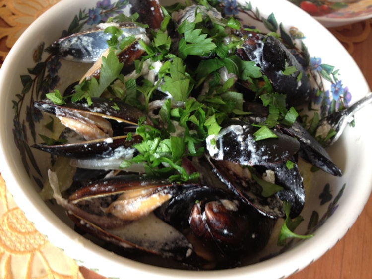 мидии со сливочным соусом и рокфором