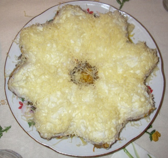слоёный салат с курицей