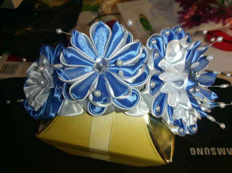 обруч с бело - голубыми цветами