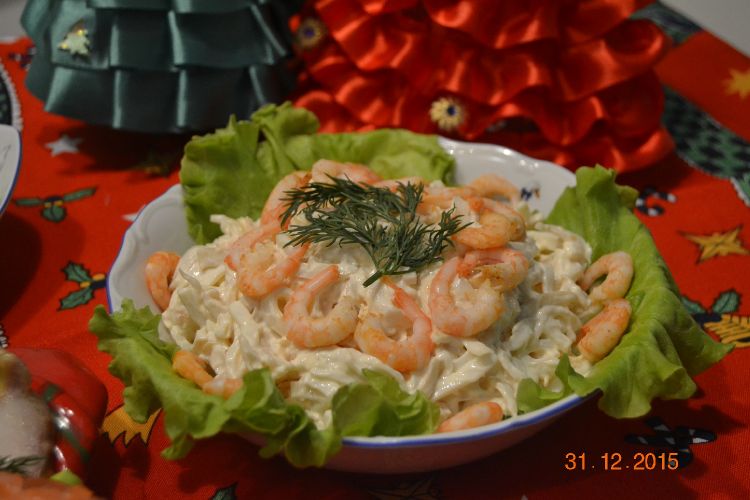 салат из кальмаров