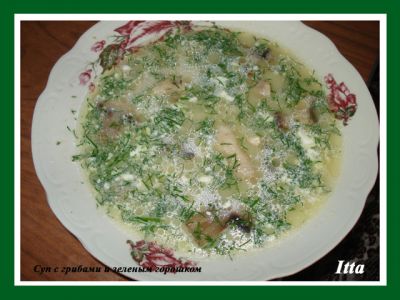 Грибной суп с зеленым горошком