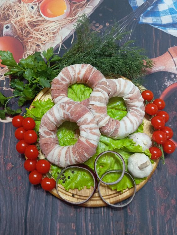Мясные кольца в беконе
