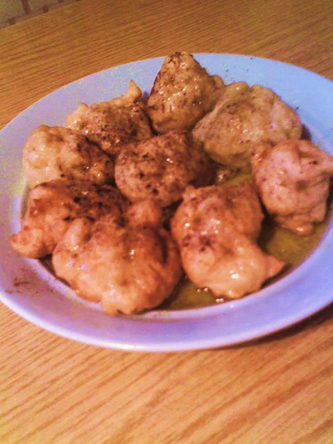 На блюдо помещаем лукумадес, сверху поливаем сиропом и посыпаем корицей, а можно и измельченными орешками.