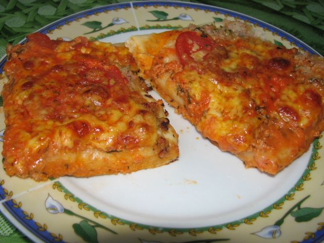 Пицца с помидорами. ветчиной и сыром