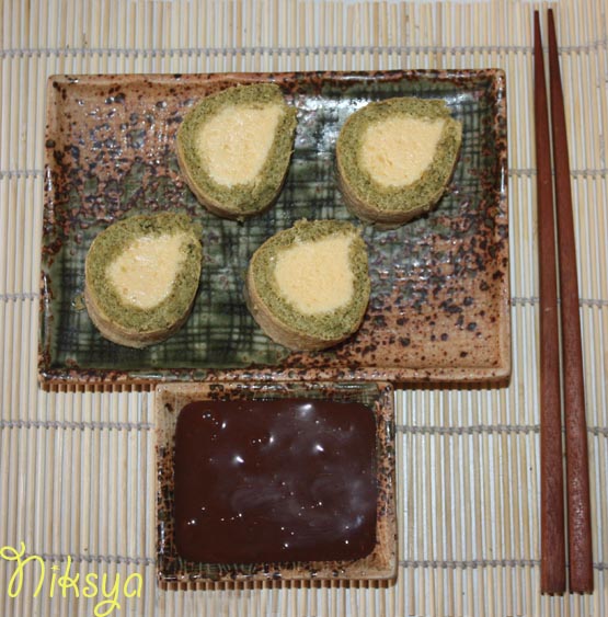 Десерт "Суши" с чаем матча и мороженым