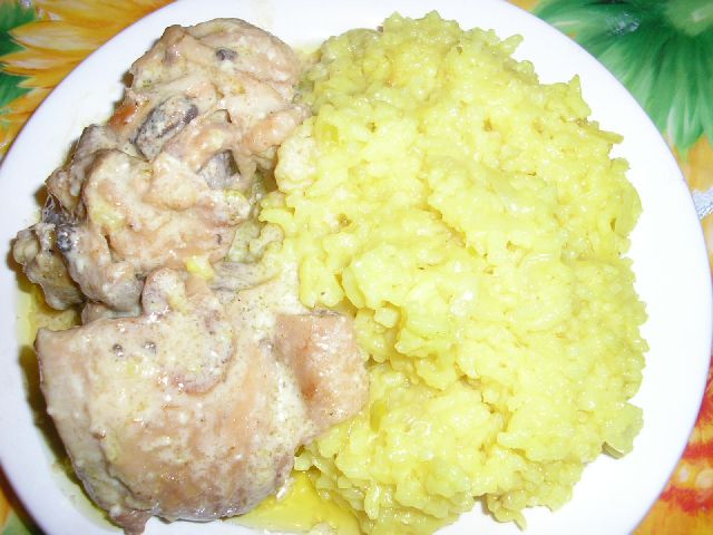 Курочка в вине и сливках с рисом