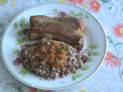 Свиные рёбрышки с гречкой