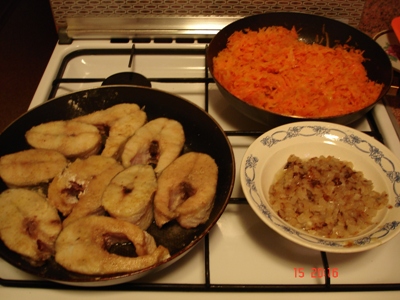Судак на овощной подложке