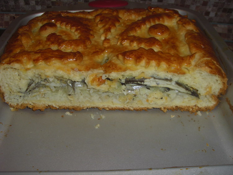 Пирог с мойвой разрез