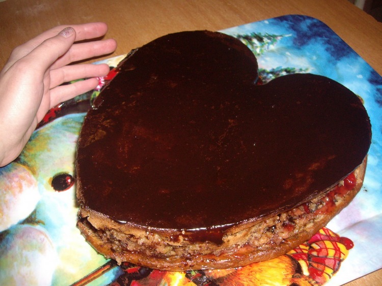 Я просто разрезала его на две части, промазала клубничным вареньем и залила шоколадной глазурью...получился клубнично-шоколадный тортик...ням-ням