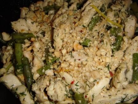 Куриная грудка с зелёной стручковой фасолью и орехами