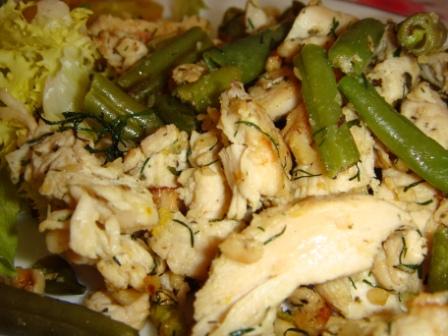 Куриная грудка с зелёной стручковой фасолью и орехами