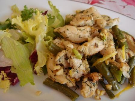 Куриная грудка с зелёной стручковой фасолью и орехами