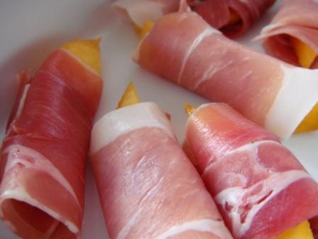 салат с персиком и ветчиной