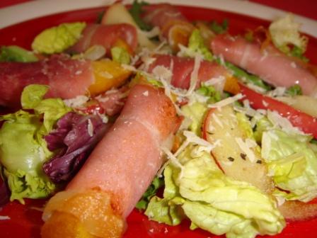 салат с персиком и ветчиной