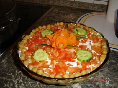 Салат выкладывается слоями.