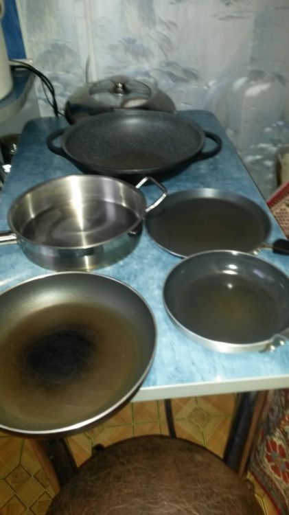 Описание изображения: а это мои сковородочки есть старенькие и есть новенькие всякие разные