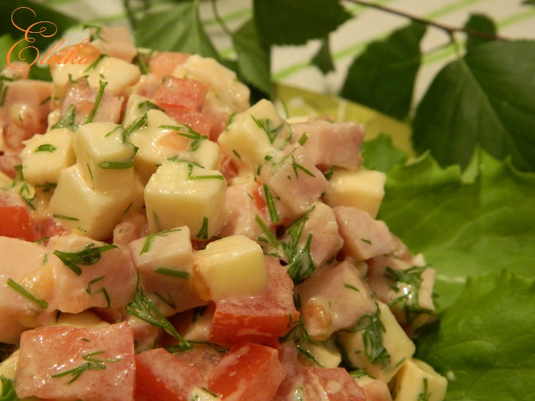 Салат из помидоров, ветчины и сыра "Сулугуни"