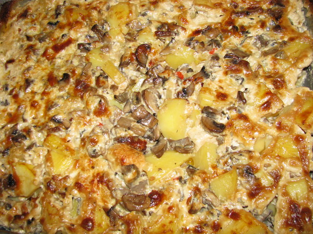 Картофель с мясом под грибной «шубой»