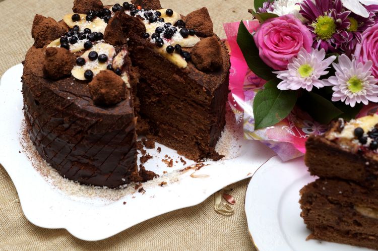 Шоколадный трюфельный торт с банановой прослойкой