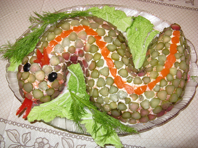 Овощной салат в форме змейки