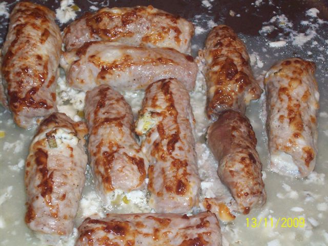 рулетики из свинины с зелёным луком(показ)