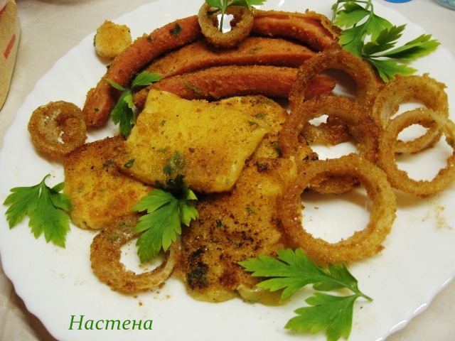 Сыр, сосиски и лук в понировке
