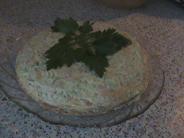 Блинныйи торт с лососем и авокадо