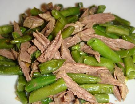 Салат с говядиной, зеленой фасолью и чесноком