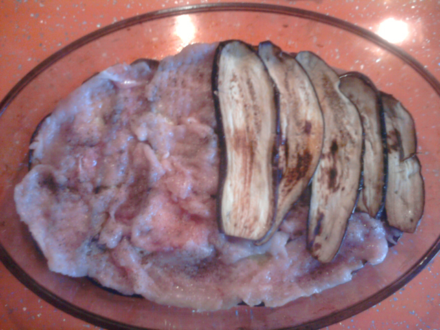Куриная грудка, запечённая с баклажанами и помидорами