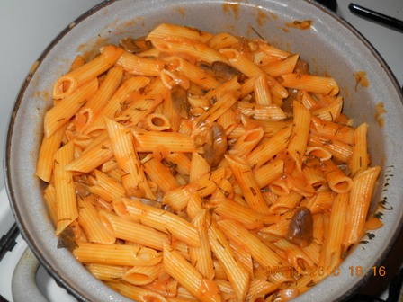 Куриные сердечки с макаронами в апельсиновом соке