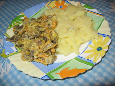 тёплый салатик из куриных желудочков