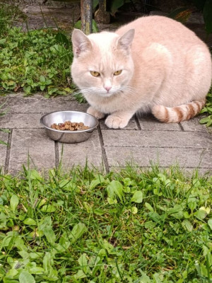 Пока маленький был,все подкармливали,сейчас то ли меньше кормят,то ли вытянулся,худой.надо взять его на свой баланс.В морозилке куринная кожа и обрезь,сварю с гречкой,пусть ест.