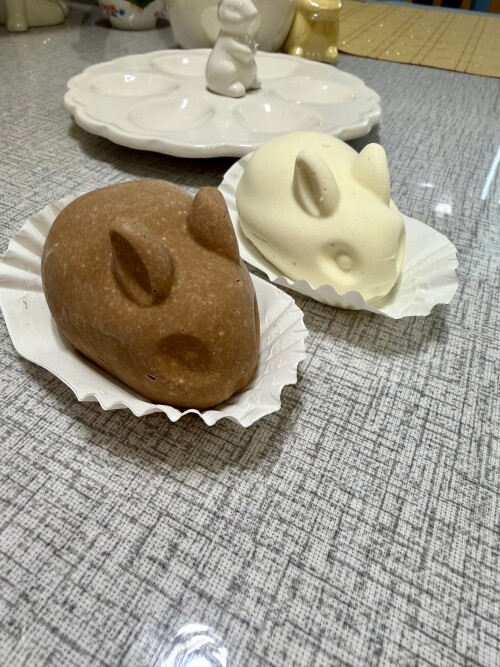 Куличи у меня шафрановые, по рецепту хозяйки сайта. Не стала выпендриваться, очень дорого сейчас готовить по новомодным рецептам. Зайцы творожные сырки. Если кто-то будет такие делать, я поделюсь как заменить дорогие ингредиенты на более доступные. Без потери вкуса и текстуры. Еще поставила тесто на краффины. Ни разу не делала, хочу попробовать. Пасхи размораживаются, еще не украшала, потом покажу. |