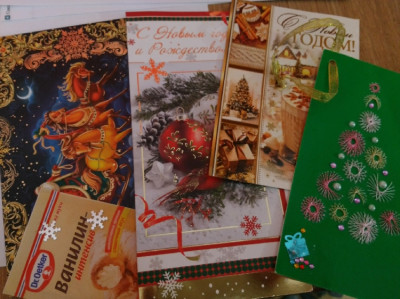 Это за несколько лет. Новогодний зуд, все на подарки делала. В начале же здесь была традиция, поздравлять друг друга с новым годом. Вот я и делала всем по индивидуальной открытке.
