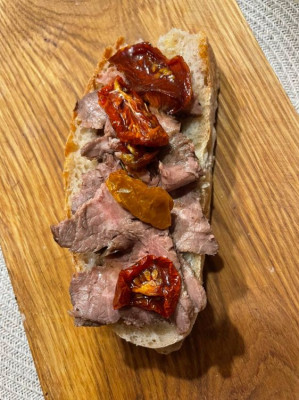 А это что за часть? Я тоже на днях ростбиф готовила, но в духовке) Интересно, что в горячем виде был жестковат, а наутро - прям таял!