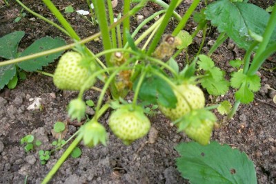 А мою первую клубничку съела улитка
