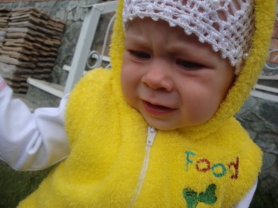 Максюха наорался так только что, что мама не горюй-покупала его, это он любит, потом начала одевать...и тут пошло поехало...  А шапочка-это вообще конец света...интересно, что соседи подумали