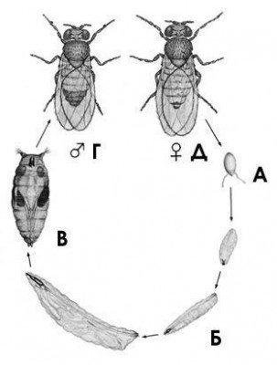 Они хорошо кушают, им надо много сил что-бы превратится в маленьких мошек. Я тоже была в недоумении как ОНО туда попало, но их откладываемые яйца очень малы, и сама мошка найдёт малюсенькую дырку и таки-да влезет ,зараза. Подобная тема уже обсуждалась http://forum.say7.info/topic6059.html ---------------------------------------------------------------------------------- Прочитала о них здесь http://www.tropicarium.ru/drosophila.htm Мушка дрозофила, как и все двукрылые, имеет три стадии развития: яйцо, личинка, взрослое насекомое (имаго) (Рис. 4). Яйца и личинки приспособлены к жизни в полужидкой среде. Эта приспособленность включает наличие у яиц поплавков-камер, позволяющих держаться на поверхности жидкости, и у личинок ― дыхательных сифонов. Средняя длина и диаметр яиц составляет 420 и 150 мкм, соответственно. При вылуплении из яйца размер личинки дрозофилы составляет немного более 0,5 мм. К концу этой стадии развития при хороших условиях содержания её размеры достигают 5 мм. Половой диморфизм у D. melanogaster хорошо выражен: самцы меньше самок по размерам тела, брюшко у них цилиндрическое и тупое на конце, тогда как у самок оно более округлое и заострено на конце. Несколько последних брюшных тергитов у самцов пигментированы и образуют черное пятно, видимое невооруженным глазом, благодаря чему их легко отличить от самок. Кроме того, у самок 8 тергитов, а у самцов их только 6. На дистальном конце первых члеников передних ног у самцов располагается половой гребешок, представляющий собой ряд крупных хитиновых щетинок, которые у самок отсутствуют. |